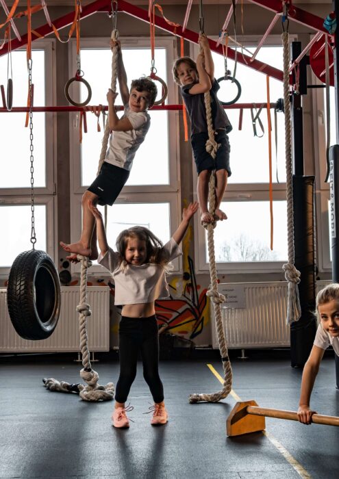 - Nowoczesne wyposażenie Dysponujemy nowoczesnym wyposażeniem, w tym ścieżką akrobatyczną Air Track, poduchą gimnastyczną Air Bag oraz konstrukcją z pomiarem czasu i rampą inspirowaną Ninja Warrior, co umożliwia różnorodne i efektywne treningi.